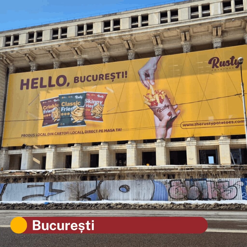 When the Rusty brand launched in 2024, our giant outdoor displays appeared in more than 30 locations across Romania in the first half of the following year, including major cities such as Bucharest, Cluj-Napoca, Oradea, Timișoara and Brașov.