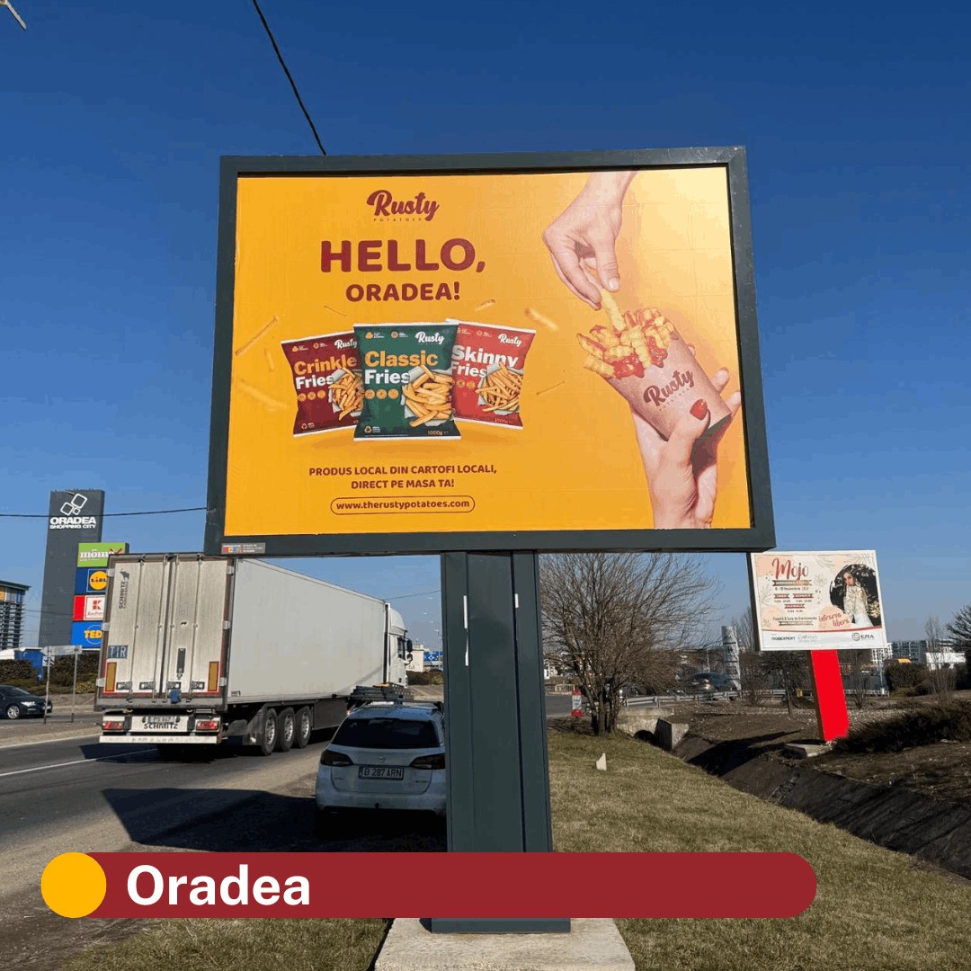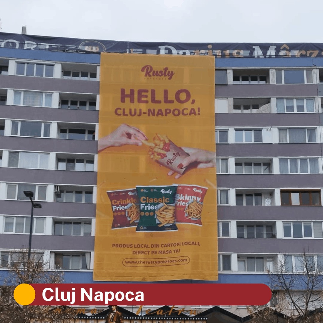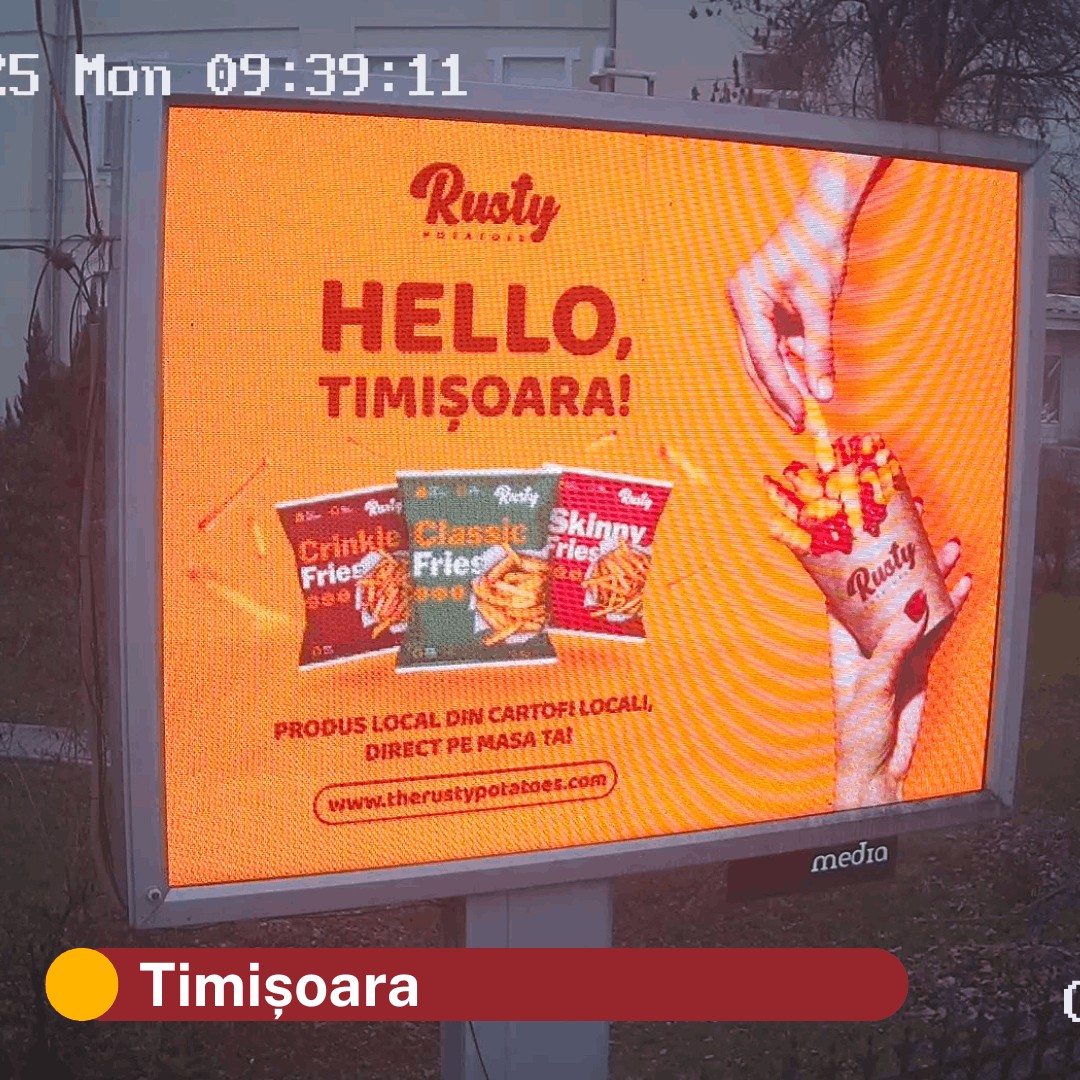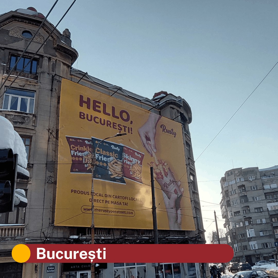 When the Rusty brand launched in 2024, our giant outdoor displays appeared in more than 30 locations across Romania in the first half of the following year, including major cities such as Bucharest, Cluj-Napoca, Oradea, Timișoara and Brașov.